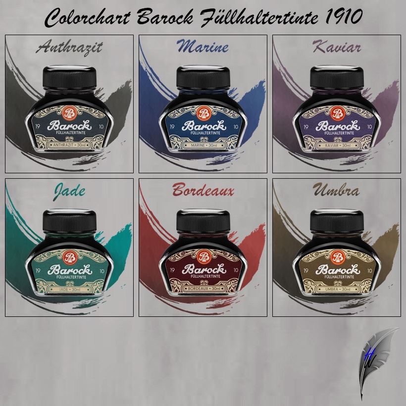Die Barock Tintenkollektion 1920 bietet Ihnen leuchtende Farben die durch ihre schönen Schattierungen für eine schönes und interessantes Schriftbild sorgen.