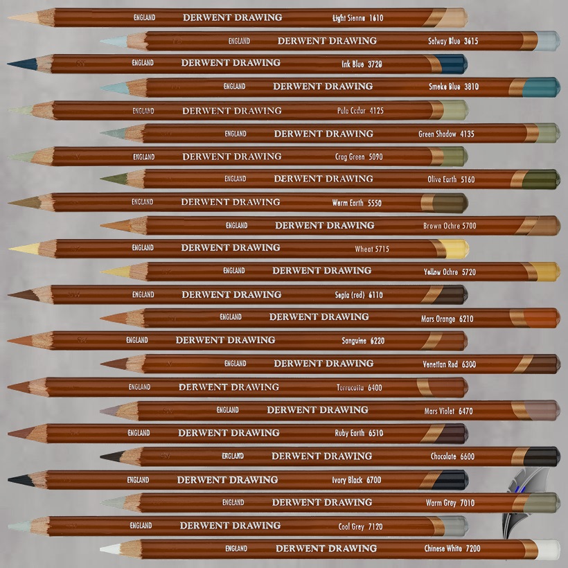 Die Derwent Drawing Pencils – hochwertige Künstler-Farbstifte in 24 natürlichen und sepia Tönen.