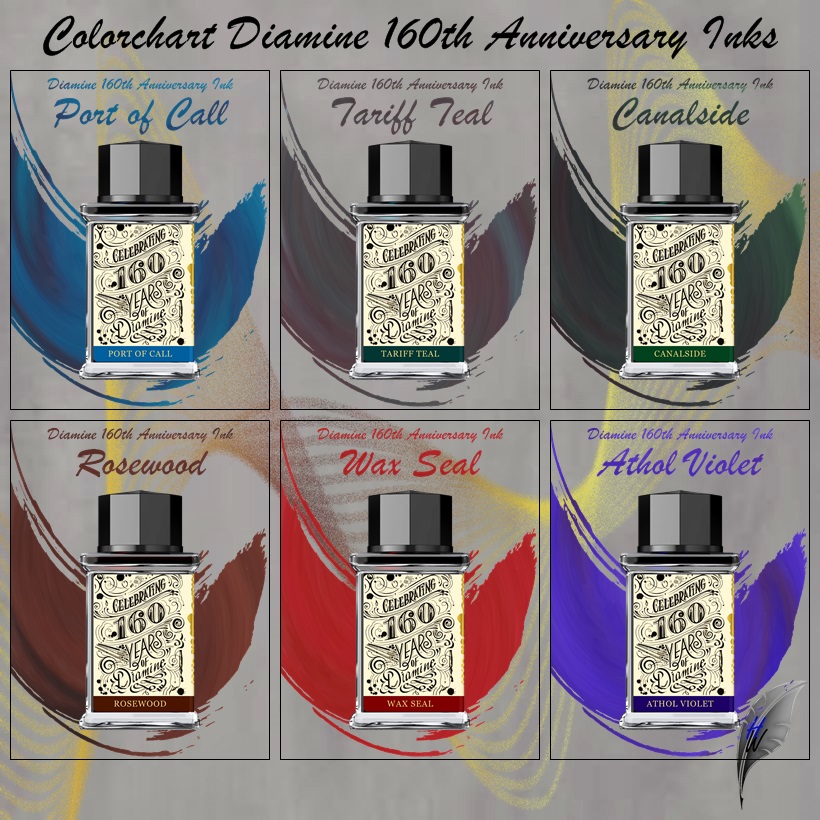Die Diamine 160th Anniversary Tinten – Tintenkollektion in 6 Sonderfarben.