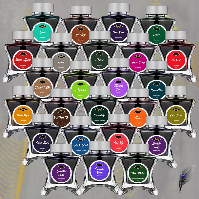 Seit 2019 überrascht Diamine alle Tintenliebhaber zur Adventszeit mit einem Inkvent-Weihnachtskalender mit 25 neuen Tintenvarianten.