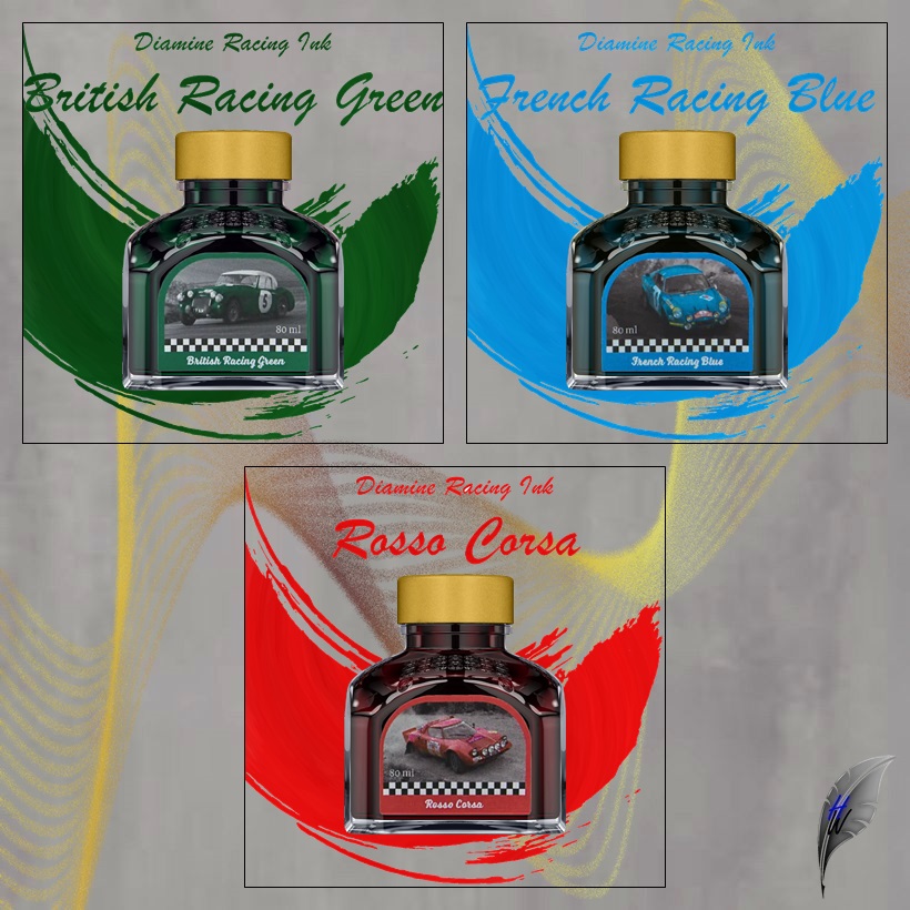 Die Diamine Racing Inks – eine Hommage an die drei wohl berühmtesten, ikonischen Rennfarben.