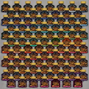 Die Tinte ist in 40 Farbtönen erhältlich. Die Farben basieren auf klassischen Farbtöne und sind passend zum Grundton mit silbernen, oder goldenen Glanzpartikel versetzt.