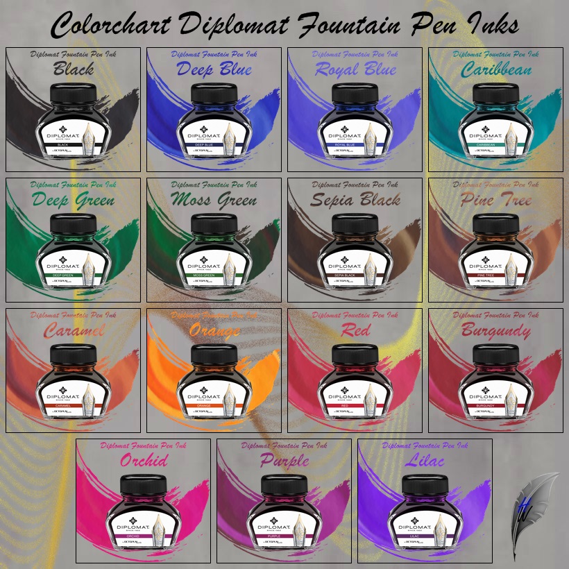 Durch die Zusammenarbeit mit der Dresdner Tintenmanufaktur Octupus kann Ihnen Diplomat nun 15 farbige Tinten anbieten.