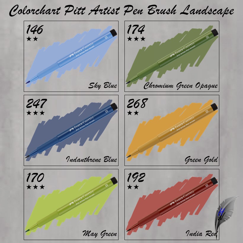 Die Faber Castell 167105 Pitt Artist Pen Brush enthalten 6 ausgewählte Farben zum Thema Landschaft.