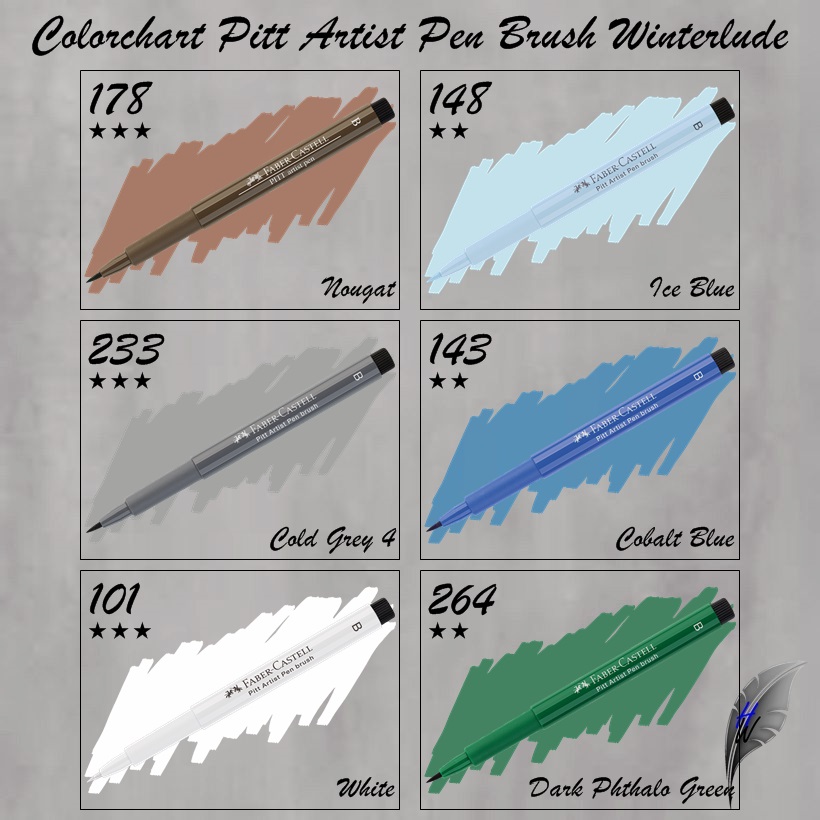 Die Faber Castell 167176 Pitt Artist Pen Brush enthalten 6 ausgewählte Farbtöne passend zum Thema Winter.