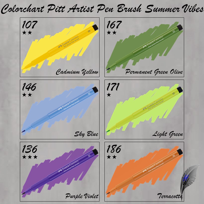 Die Faber Castell 167178 Pitt Artist Pen Brush enthalten 6 ausgewählte Farbtöne passend zum Thema Sommer.
