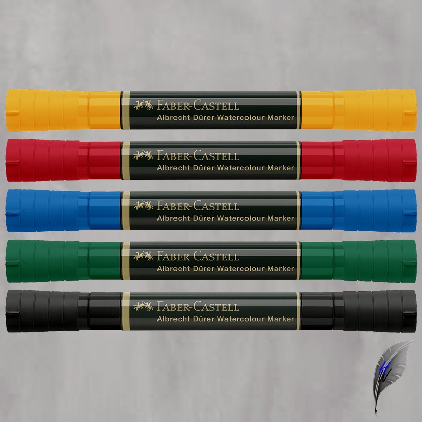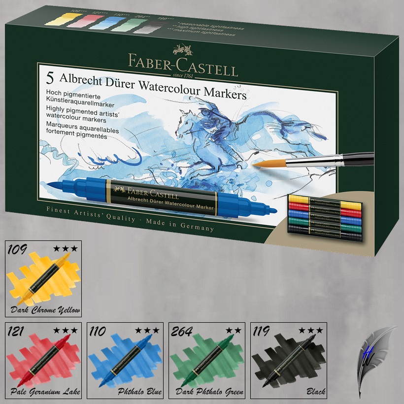 Die Faber Castell Aquarellmarker 160305 Albrecht Dürer – 5 aqurellierbare Brushmarker mit Pinsel- und Faserspitze.