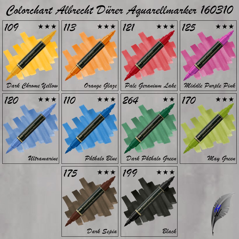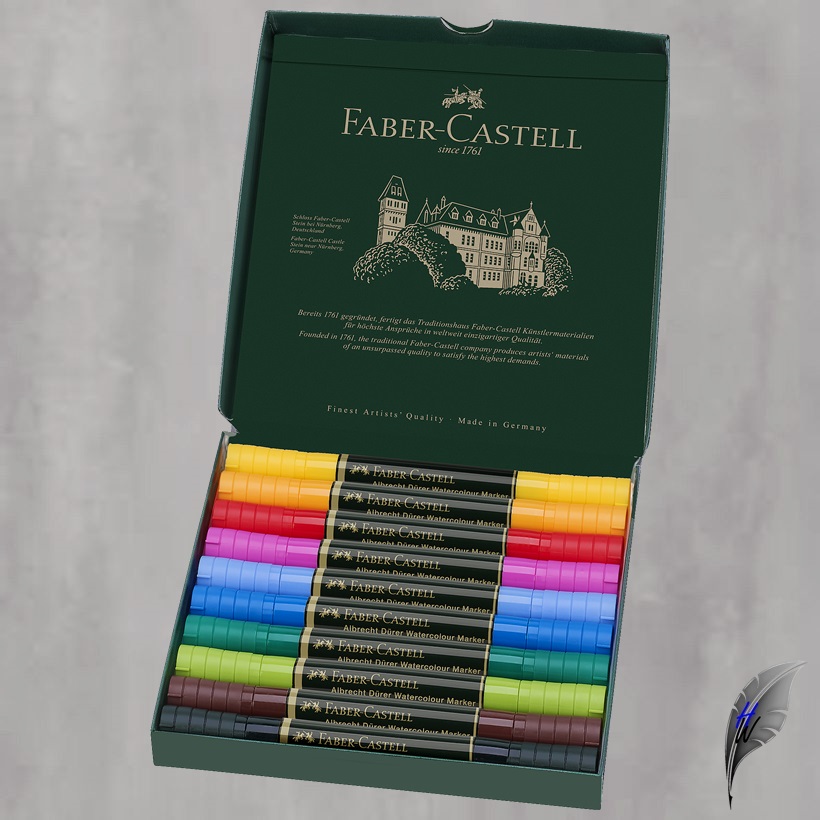 Die Faber Castell Aquarellmarker 160310 Albrecht Dürer – 10 aqurellierbare Brushmarker mit Pinsel- und Faserspitze.