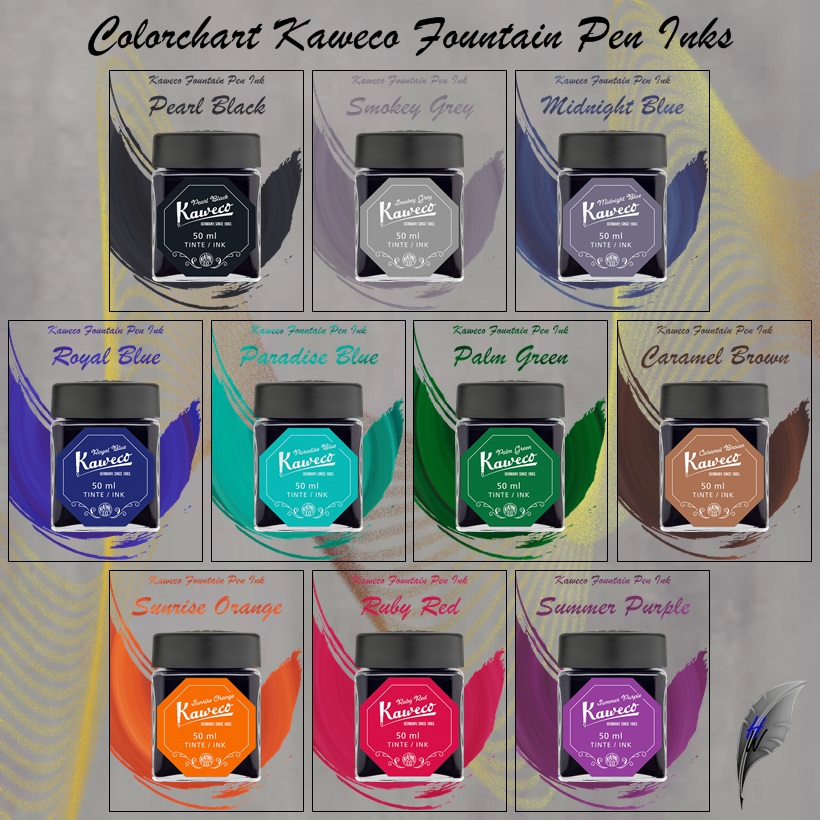 Mit isgesamt 10 Farben bietet Ihnen die Füllhaltertinten von Kaweco ein schönes Farbspektrum.