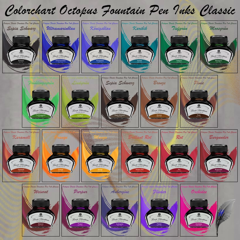 Die Octopus Fluids Füllhaltertinte – Tintenkollektion in 22 wunderschönen Farben.