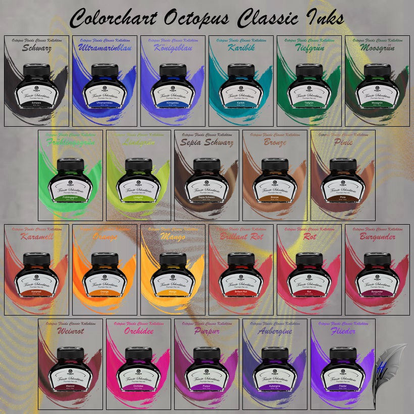 Die Octopus Füllhaltertinte – Tintenkollektion in 22 wunderschönen Farben.