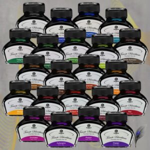 Das Tintenglas mit 30 ml. Inhalt hat einen luftdicht schließenden Schraubverschluss. Richtig verschlossen bleibt die Tinte über Jahre schreibbereit.