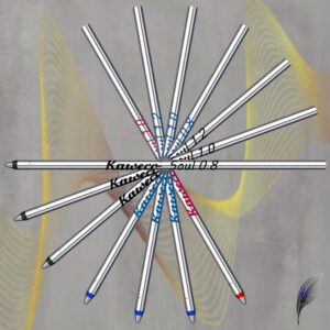 Die Minen sind in der Strichbreite M ( mittel, ca. 0,5 mm ) in den Farben Schwarz und Blau erhältlich.