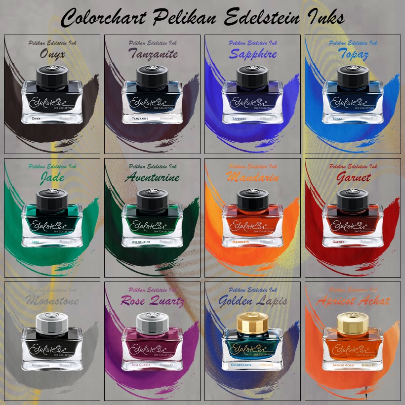 Die Kollektion besteht aus 12 Tinten in Edelsteinfarben, deren spezielle Rezeptur ein besonderes Schreiberlebnis vermittelt.