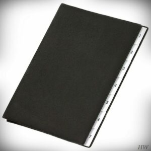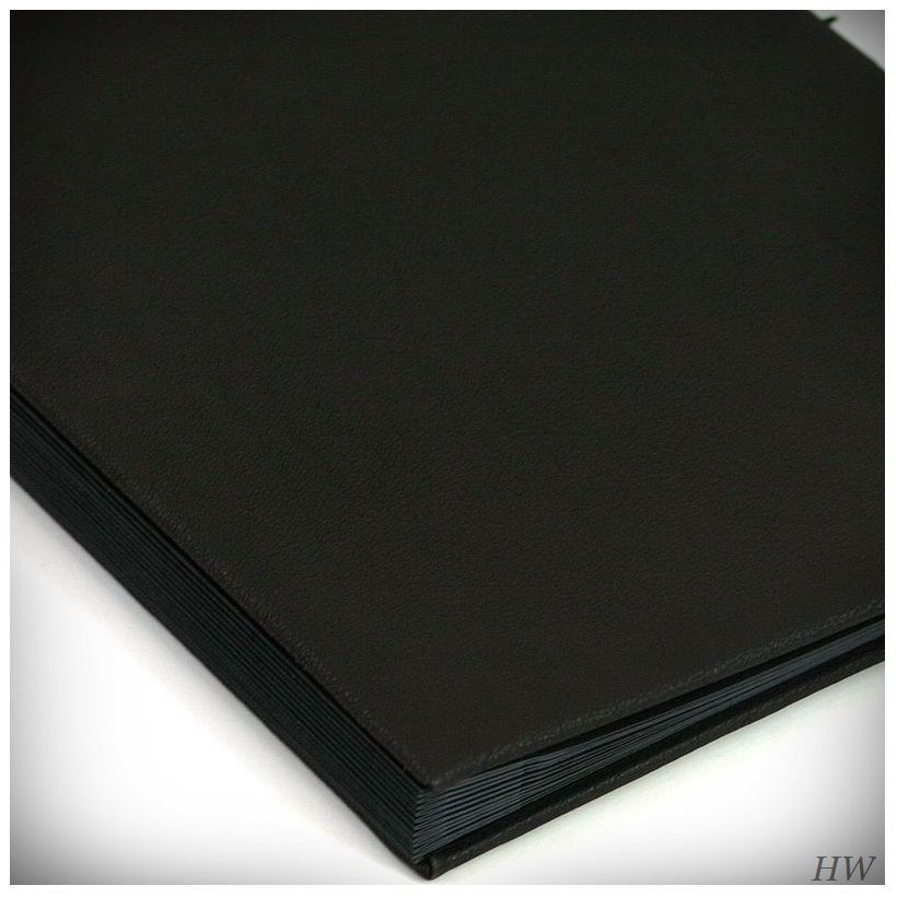 Vorder- und Rückendeckel sind innenseitig mit feinem,schwarzem Leinen kaschiert.
