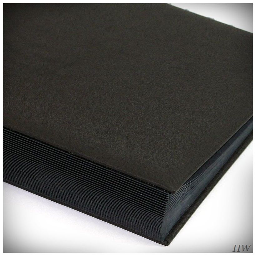 Vorder- und Rückendeckel sind innenseitig mit feinem, schwarzem Leinen kaschiert.