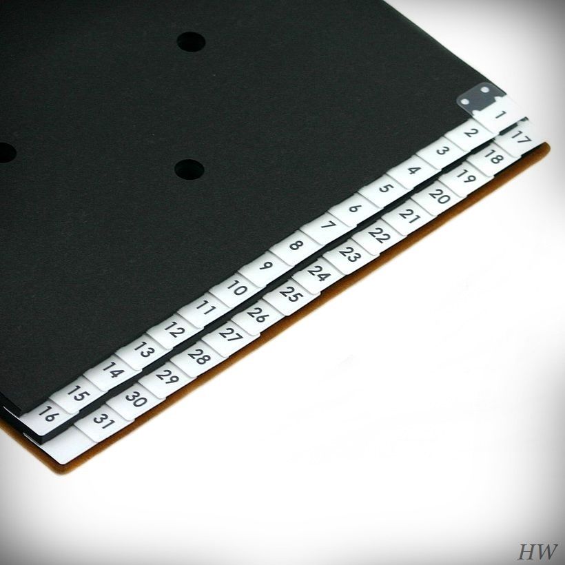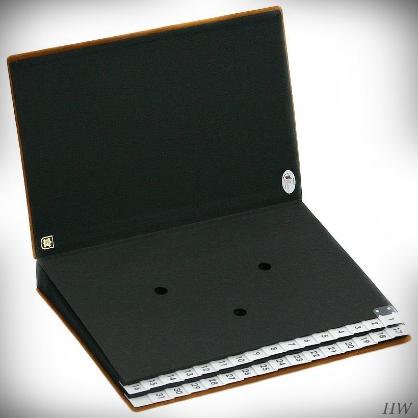 Die Register-Trennblätter sind aus schwarzen Kartonage mit Sichtlöchern hergestellt und ermöglichen die Aufnahme von Unterlagen bis DIN A4+ Fotmaten.